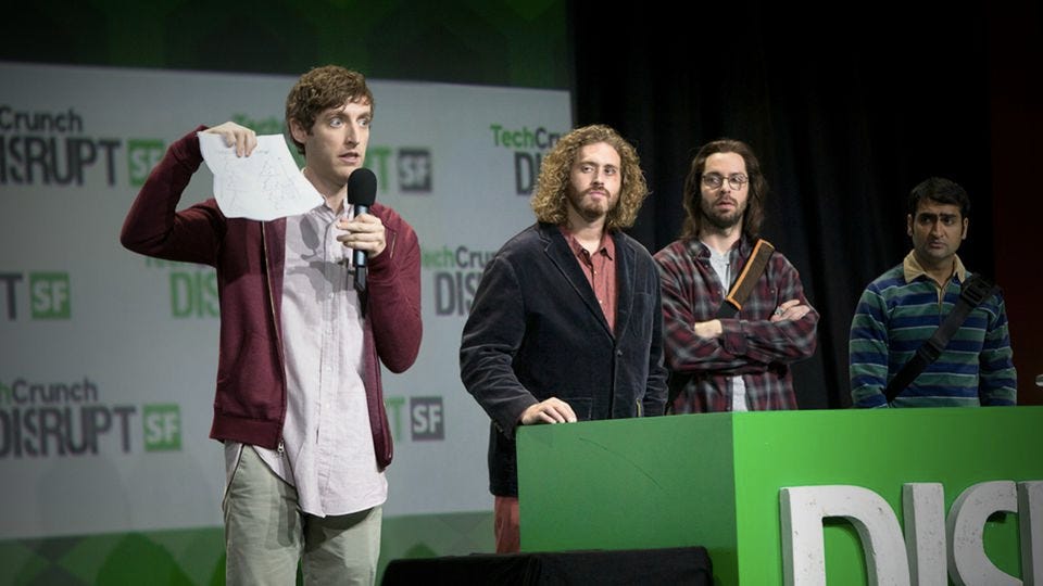 A bunch of developers are living in a hacker house in Silicon Valley working on a company that specializes in compression - upload a photo, video, 3D file and compress it with little to no loss. Lossless compression one may say. The show follows the trials and tribulations of the team as they navigate the woes of life at the startup known as Pied Piper. After lots of hard work and obstacles, they find themselves at a startup competition, competing against fictitious behemoth Hooli to see which company has a better compression algorithm. Both companies have to show their stuff and wait for a fateful moment to see who performs best, with their success depending on one metric — a Weissman score.