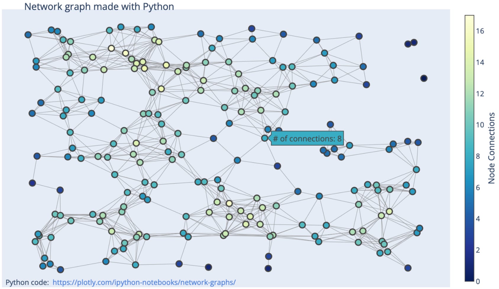 To visualize networks graphs using Python, try using Plotly and NetworkX