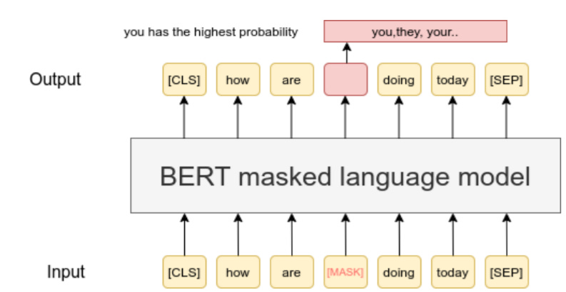 Word masking: Masking tokens in a phrase to the model and figuring out which word could be the best fit.